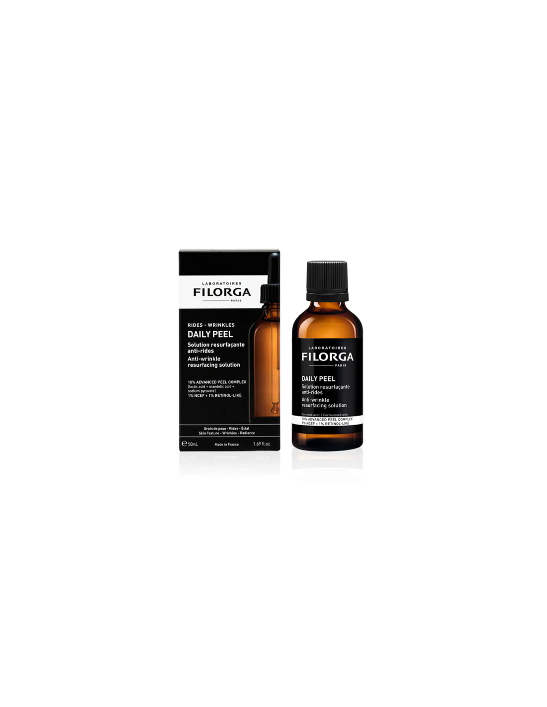 Filorga Daily Peel Solución Anti-Arrugas 50 ml es una solución rejuvenecedora de uso nocturno formulada para alisar arrugas, mejorar la textura de la piel y potenciar la luminosidad. Desarrollada por Filorga, actúa mediante una exfoliación diaria progresiva que favorece la renovación celular y ayuda a suavizar los signos visibles de la edad.