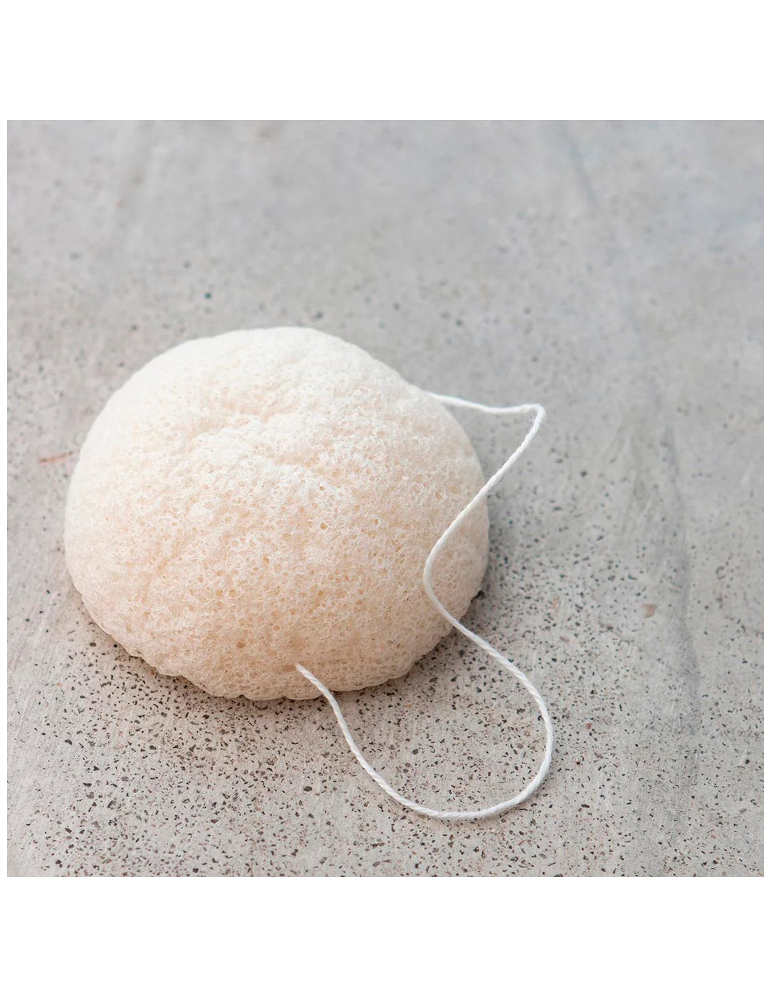 Esponja natural fabricada a base de raíces de konjac (fibra vegetal natural) con textura suave y delicada que limpia en profundidad y realiza una exfoliación suave, que incluso puede realizarse en el contorno de los ojos.