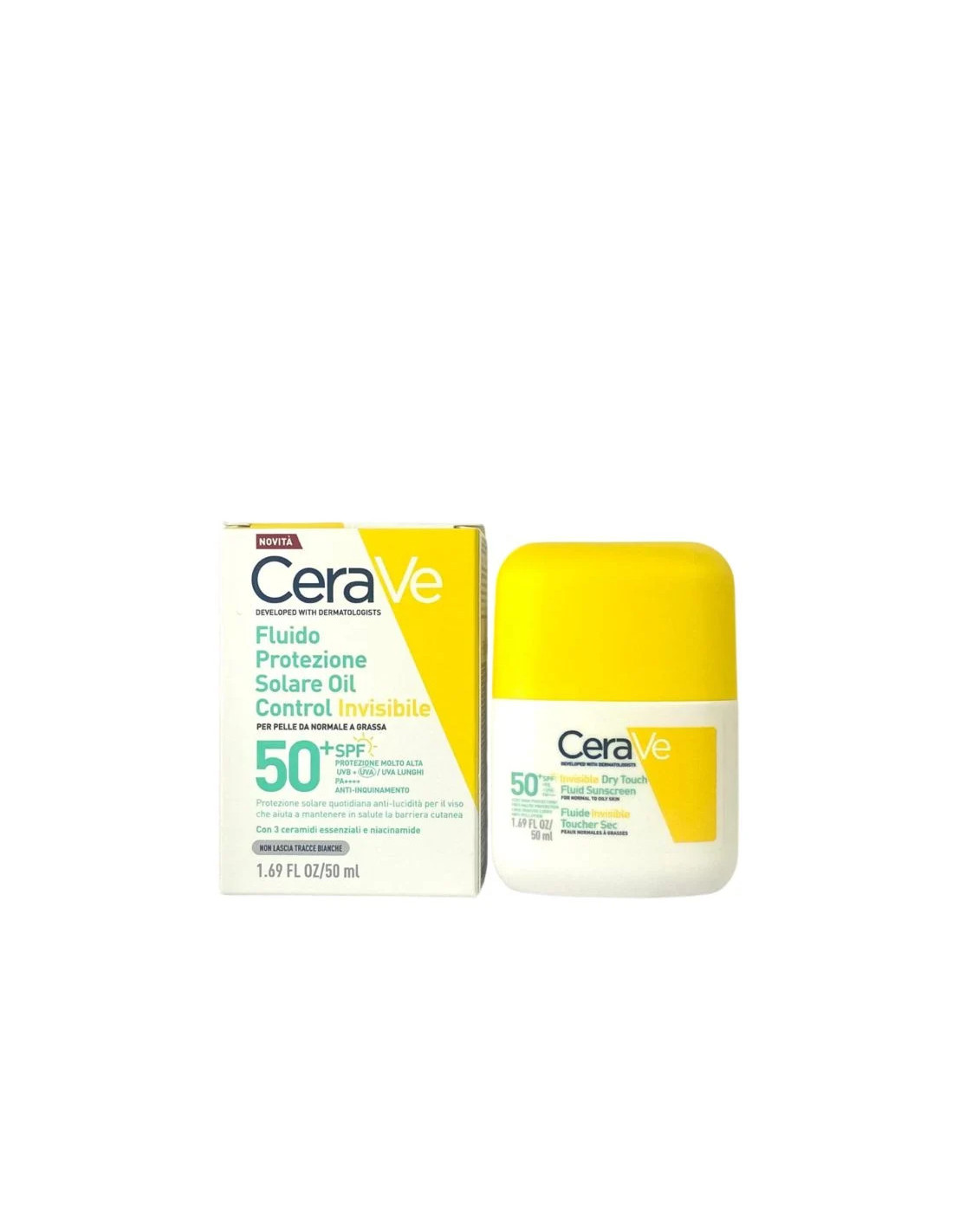 El Fluido Protector Invisible Oil Control SPF50+ CeraVe para el rostro, adecuado para piel normal a grasa y con un acabado invisible, es apto para uso diario y está testado bajo el maquillaje. Con una muy alta protección UVB + UVA, es no comedogénico, transpirable y no graso. Proporciona 12H Oil Control* Y 24H de hidratación.
