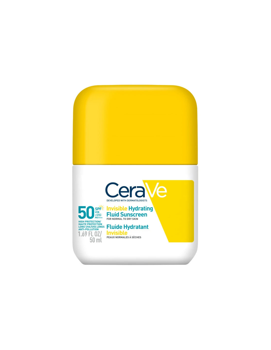 El Fluido Protector Invisible Hidratante SPF50 CeraVe para el rostro, adecuado para piel normal a seca y con un acabado invisible, es apto para uso diario y está testado bajo el maquillaje. Con una alta protección UVB + UVA, ayuda a prevenir los signos del envejecimiento, como la hiperpigmentación y las líneas de expresión. Proporciona 24h de hidratación*, y es no comedogénico.