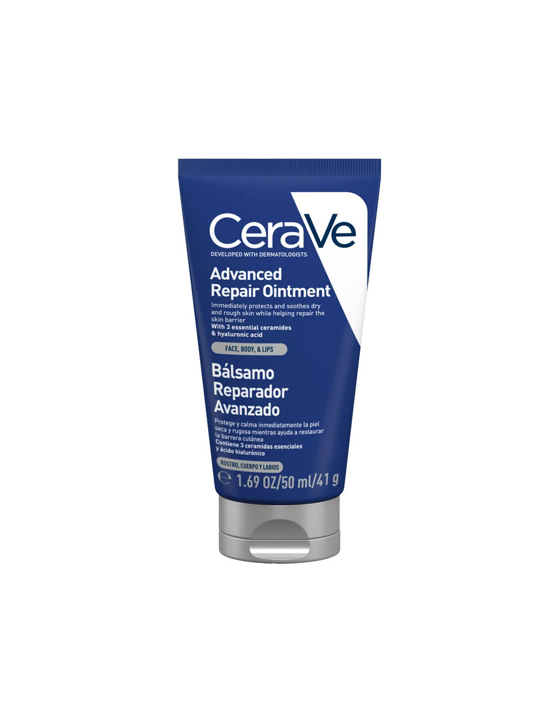 CeraVe Bálsamo Reparador Avanzado está formulado con vaselina, ácido hialurónico y 3 Ceramidas Esenciales. Protege, hidrata y alivia inmediatamente las pieles extremadamente secas, irritadas o agrietadas, mientras ayuda a restaurar la barrera cutánea.